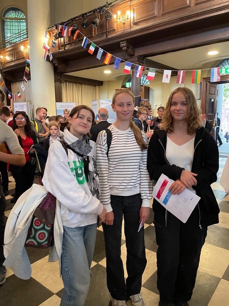 A class from the DSL that included members and non-members of the European Ambassadors visited the European Language Day event.