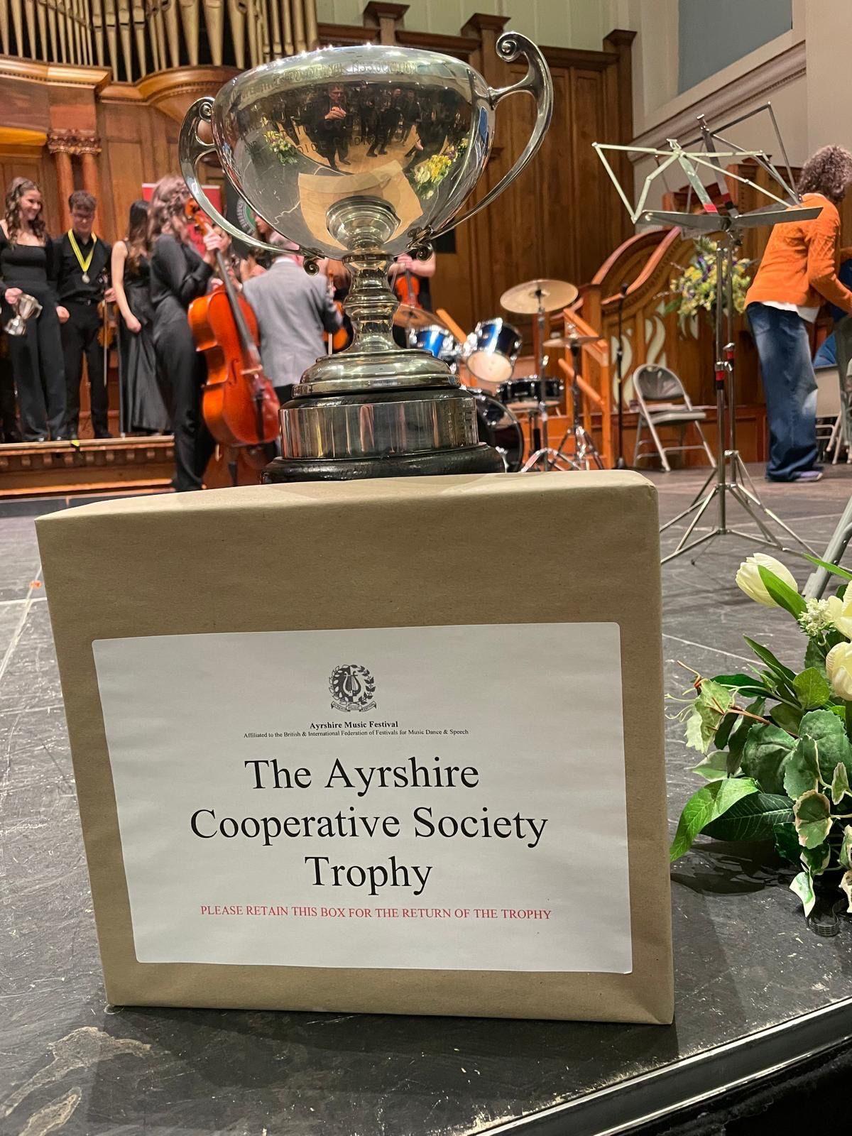 The musicians also performed in the Ayrshire Music Festival as the Wellington Exchange Orchestra. They won their class and were presented with the Ayrshire Co-operative Society Trophy.